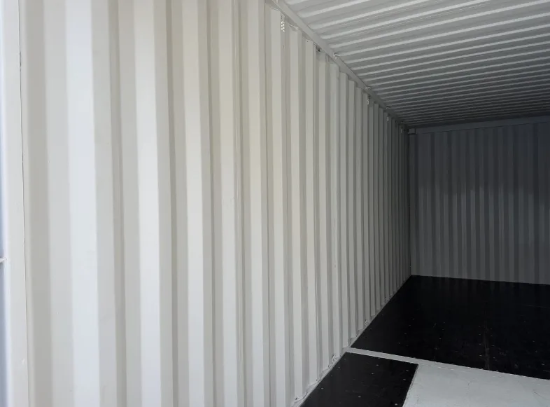 High Cube shipping storage container, The white exterior presents a crisp, professional appearance that suits residential, retail, or office-adjacent installations.